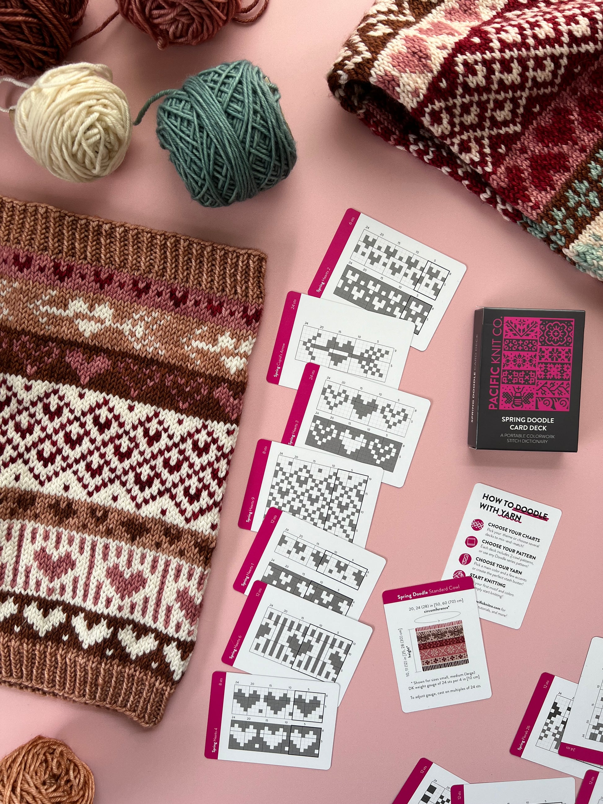 The spring doodle deck from Pacific Knit Co is your favourite new portable colourwork stitch dictionary!