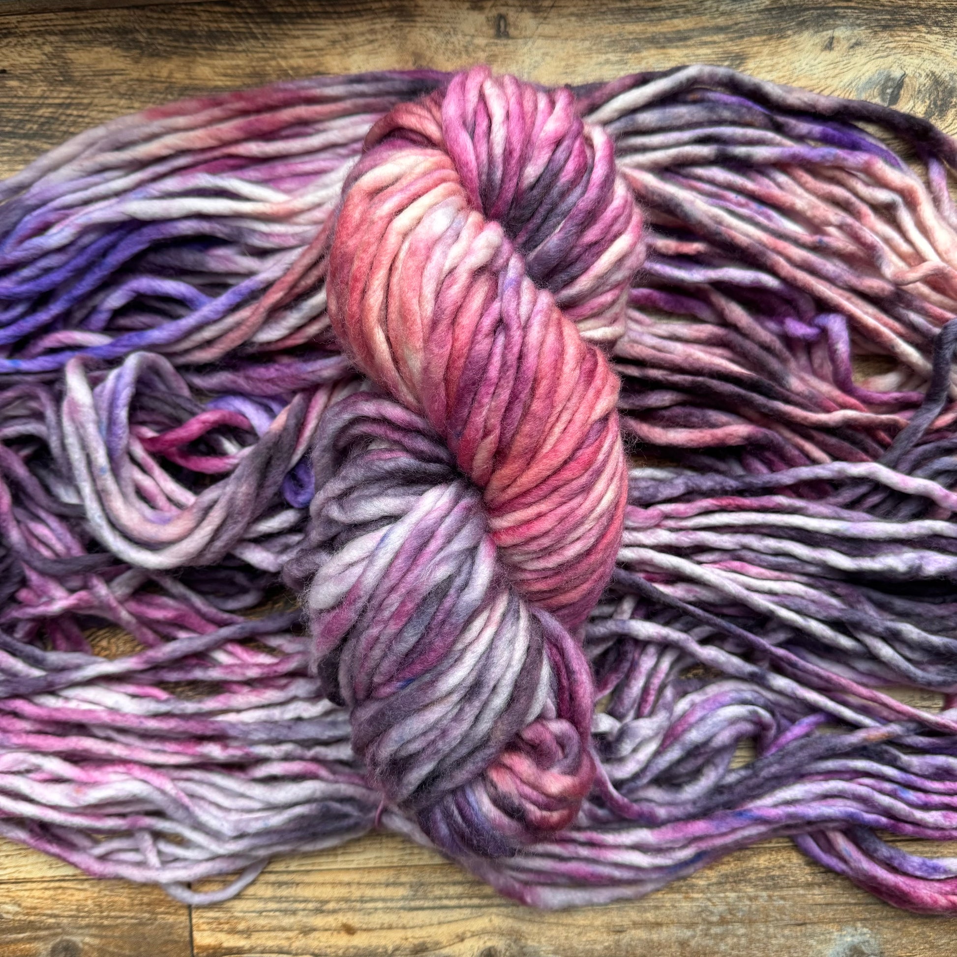 This is a luxury, single ply super squishy yarn made of 100% Superwash Merino Wool. It's approximately 90metres (98yds) per 150g skein reminiscent of Malabrigo's Rasta yarn.