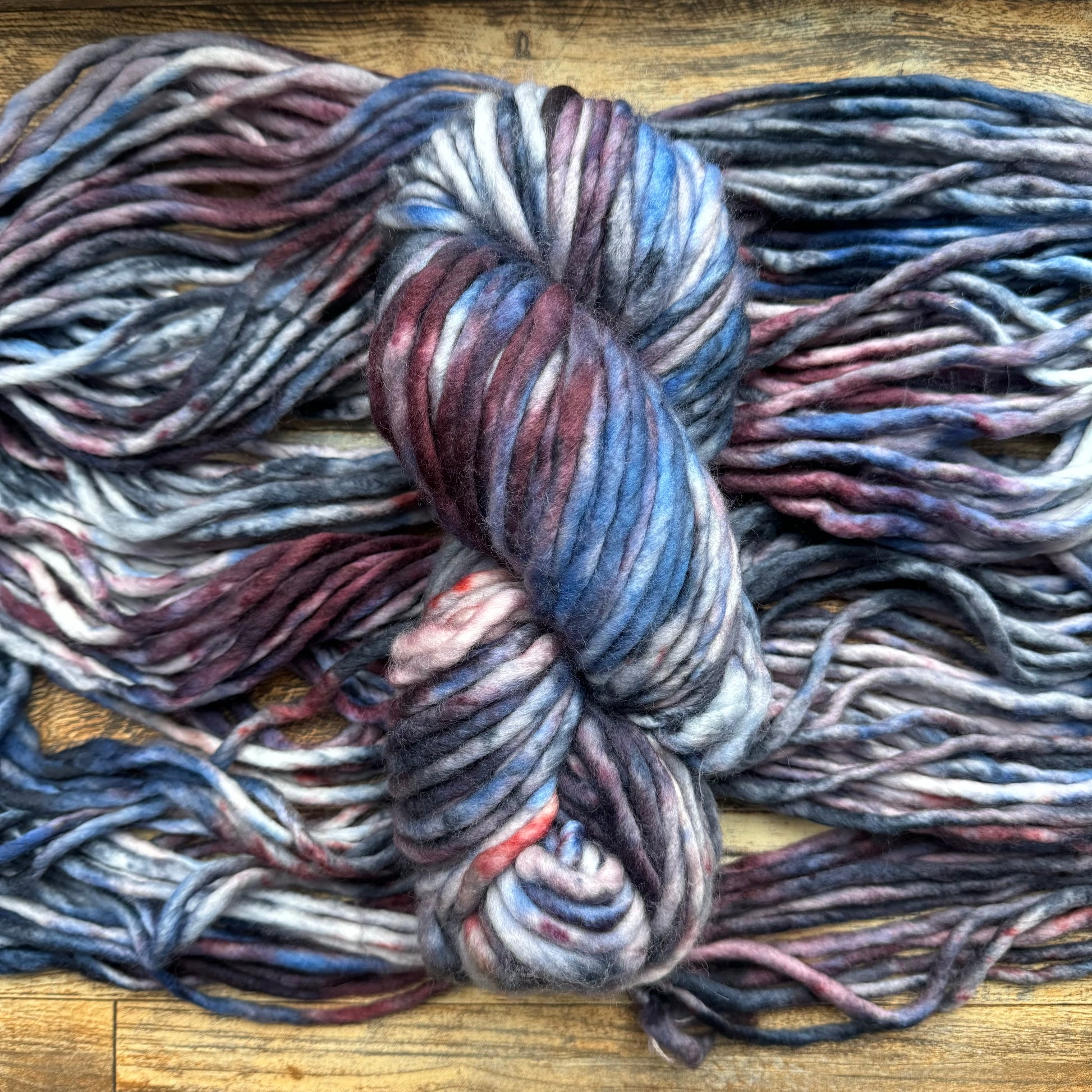 This is a luxury, single ply super squishy yarn made of 100% Superwash Merino Wool. It's approximately 90metres (98yds) per 150g skein reminiscent of Malabrigo's Rasta yarn.